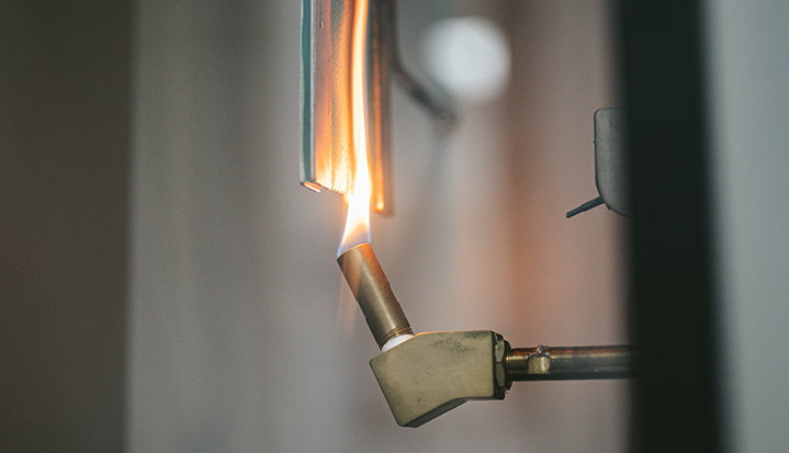 炎の下でアウトドア生地の難燃効果をテストします。 生地が一定の難燃性能を持っているかどうかを確認するには、生地が炭化する長さ、炎から離れた後に生地が燃えるかどうかをテストします。