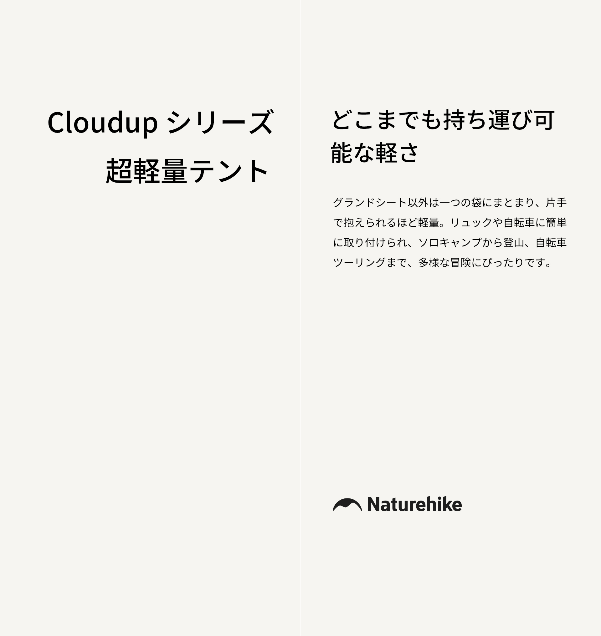 Naturehike Cloud Up1 テント 1人用 防水 防風 ソロキャンプ 二重層 プロフェッショナルテント