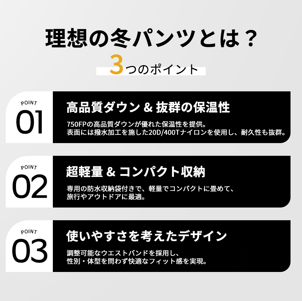 Naturehike DW90 ダウンパンツ 高品質ダウン 防寒 暖パンツ ダックダウン ズボン メンズ レディス 超軽量 冬用 750FP