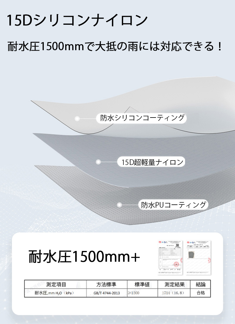 フロアシート:20Dシリコンナイロン、防水PU耐水圧3000mm+