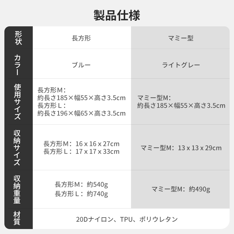 マミー型M:約長さ185×幅55×高さ3.5cm