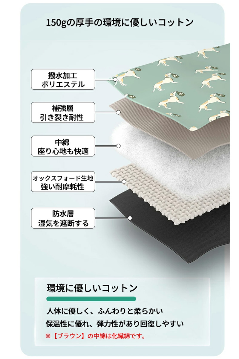 素材:ポリエステル(表)、環境に優しい綿150g(中綿)、オックスフォード生地(裏)