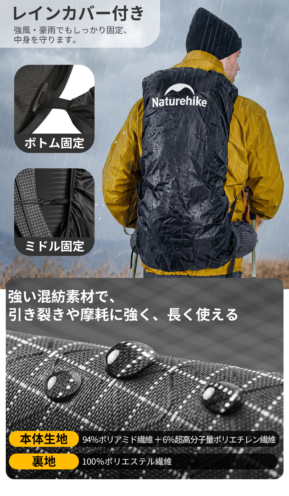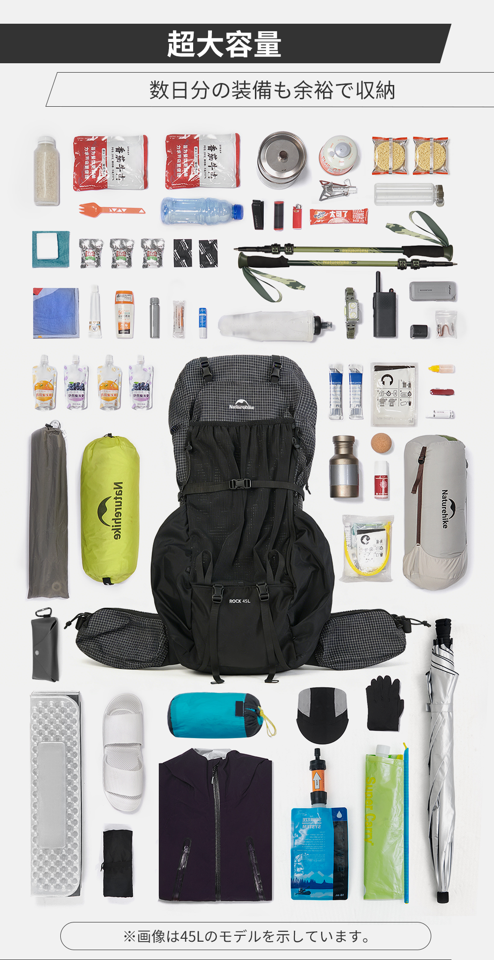 Naturehike Rock2.0 ハイキングバッグ バッグ バックパック 登山 リュック ハイキング リュックサック 40L+5L 60L+5L