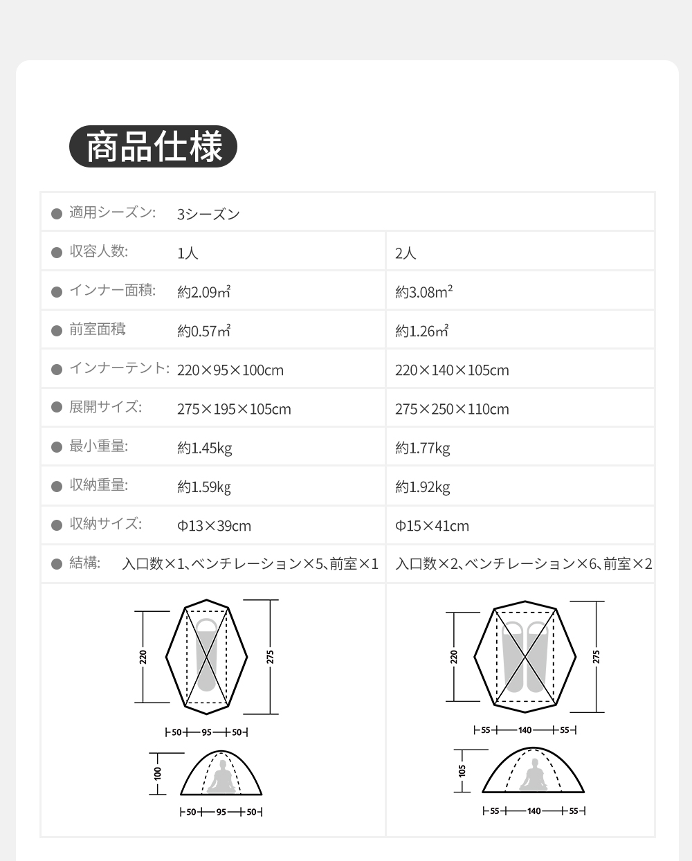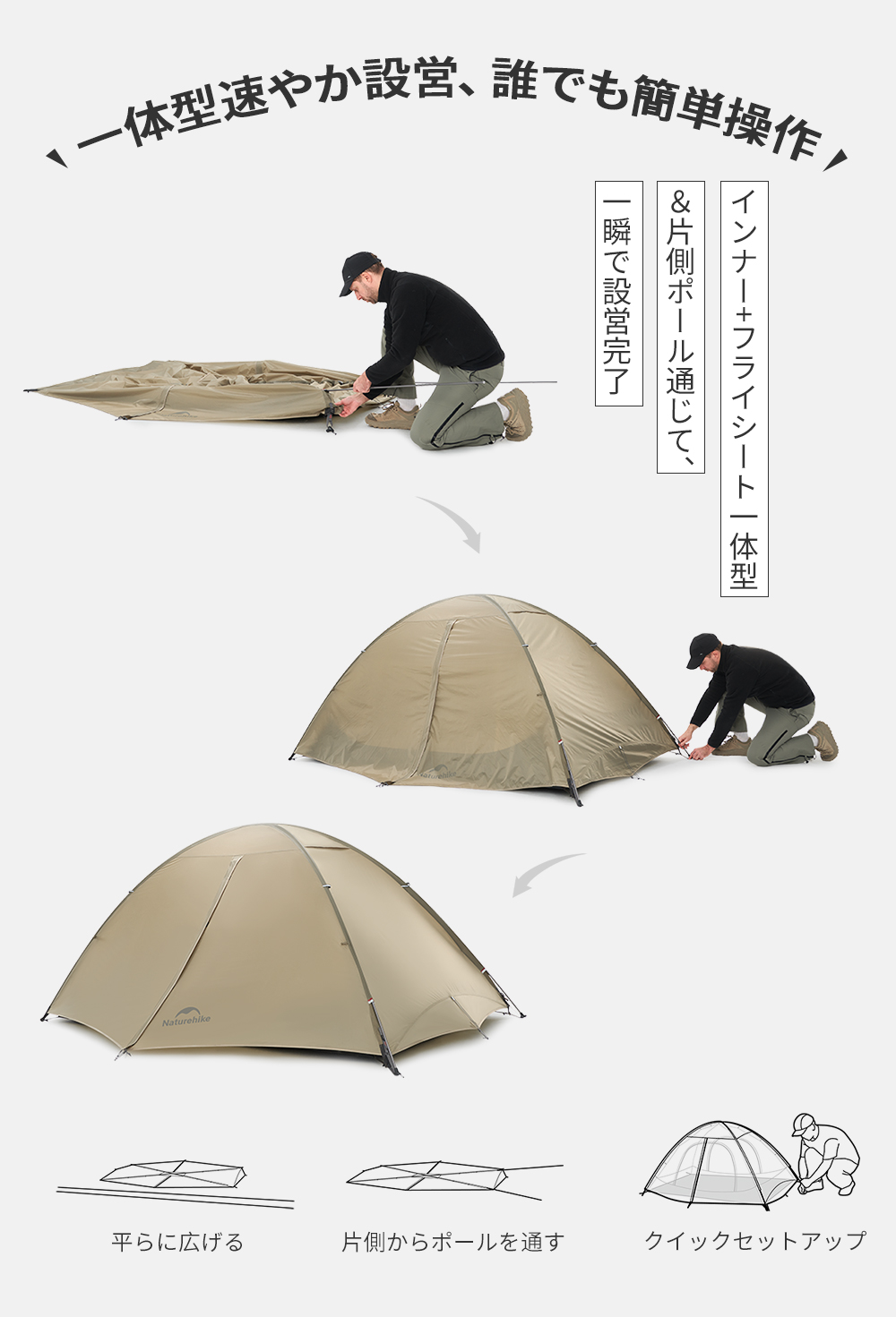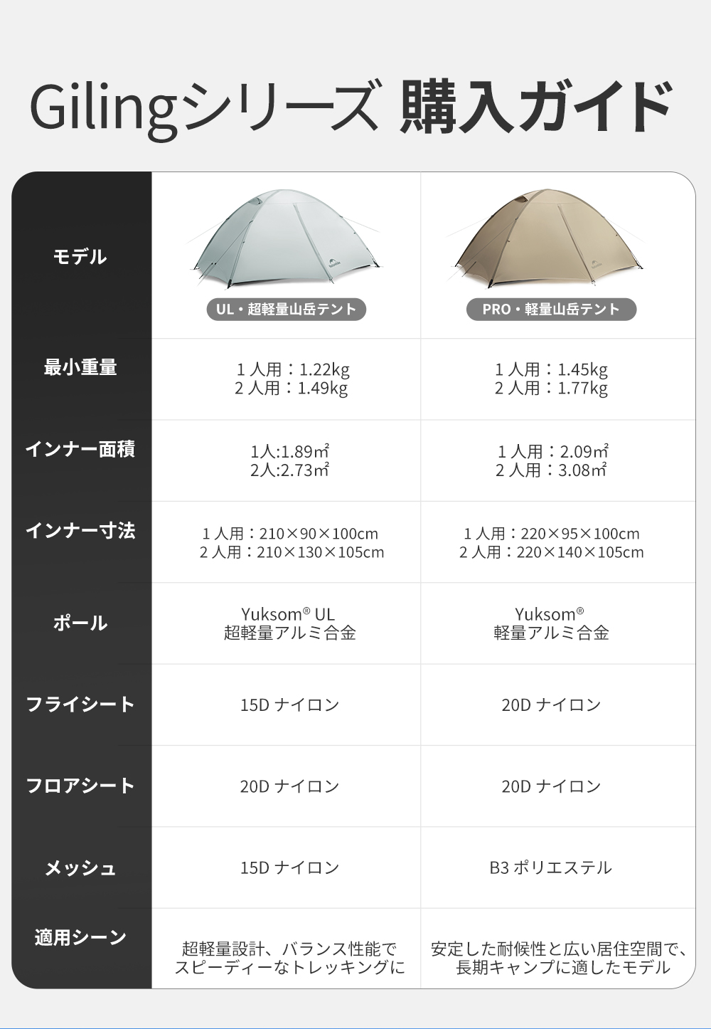新作予約販売 Naturehike Giling PRO テント 1/2人用 軽量 アウトドア 二重層 専用グランドシート付 耐水圧3000+mm ドームテント