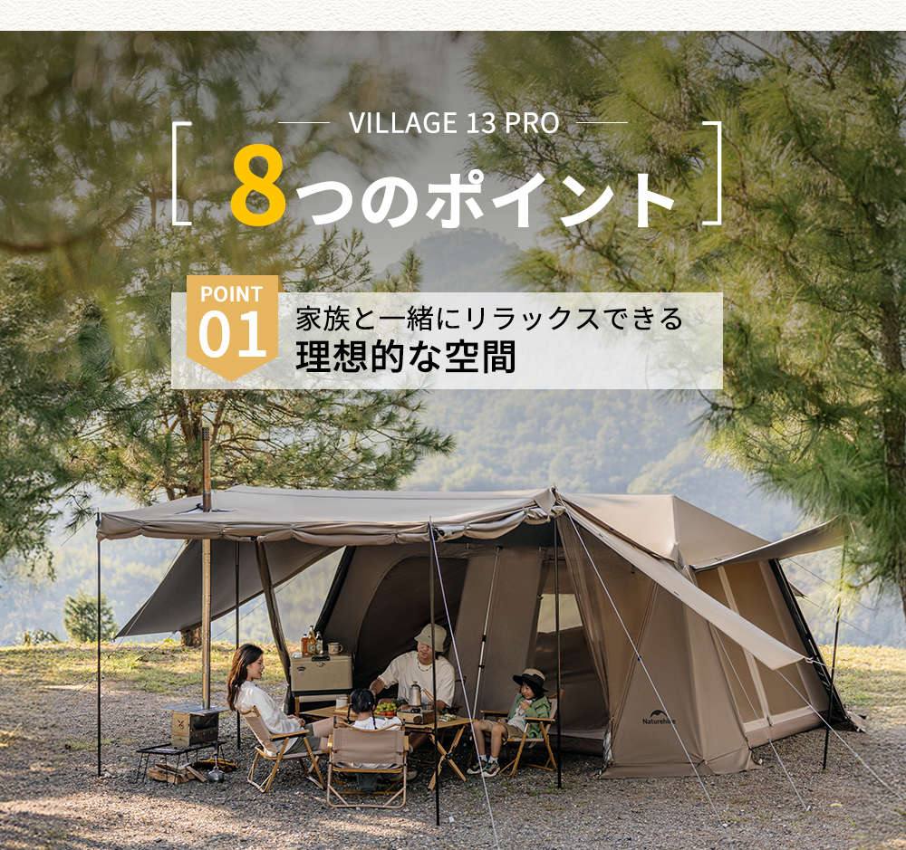 【新作】Naturehike Village13 Pro プレミアム版+ベーシック版 ワンタッチテント アルミ合金フレーム 煙突口対応可能前幕