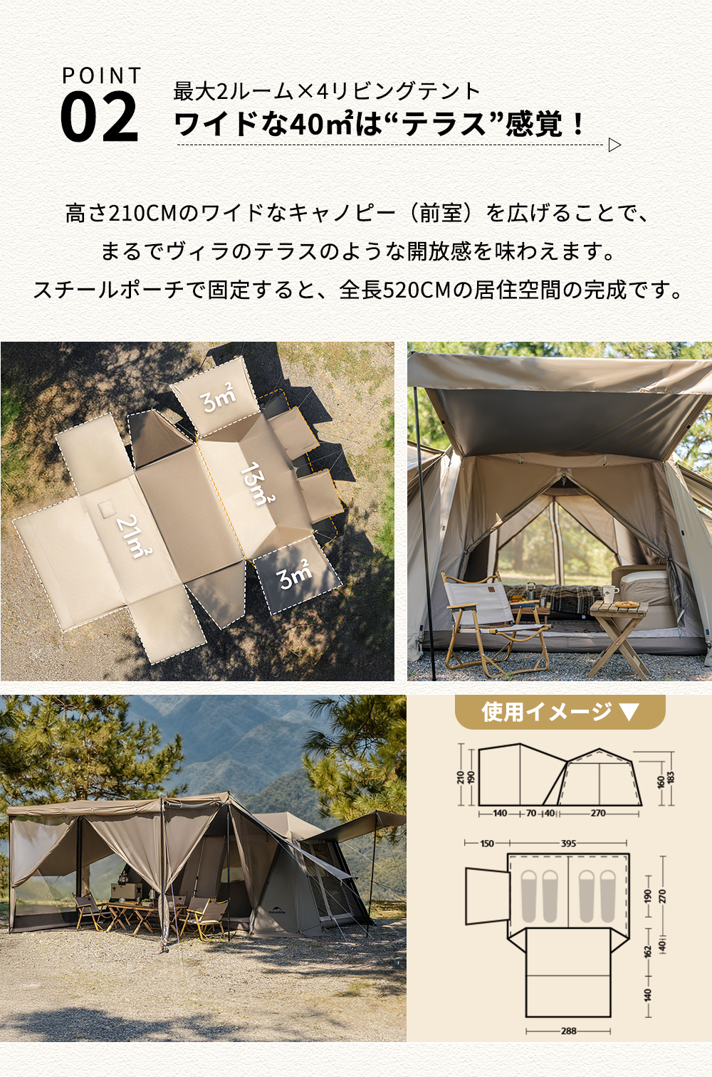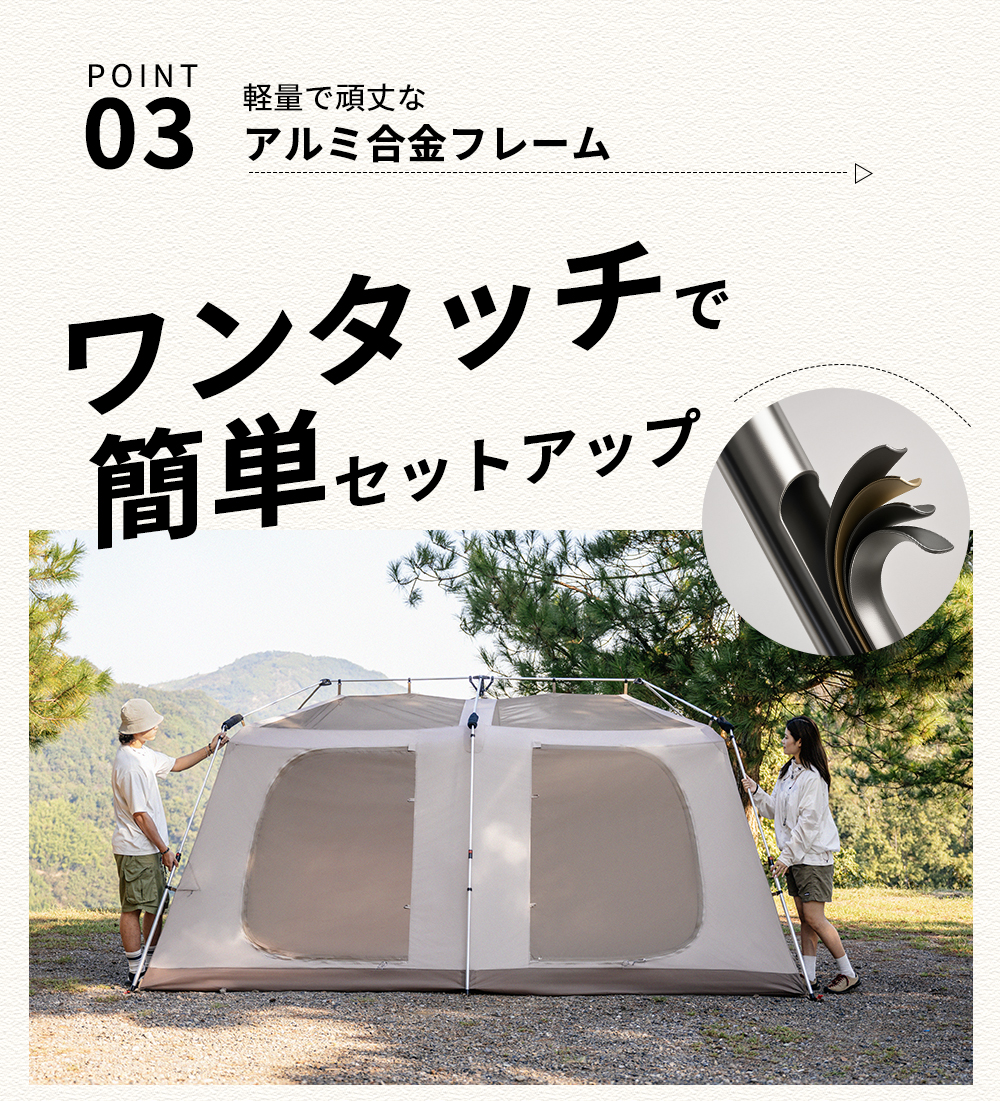 防風防災 ファミリー グランピング ビレッジ13 耐水圧10000mm ロッジ型 ツールーム