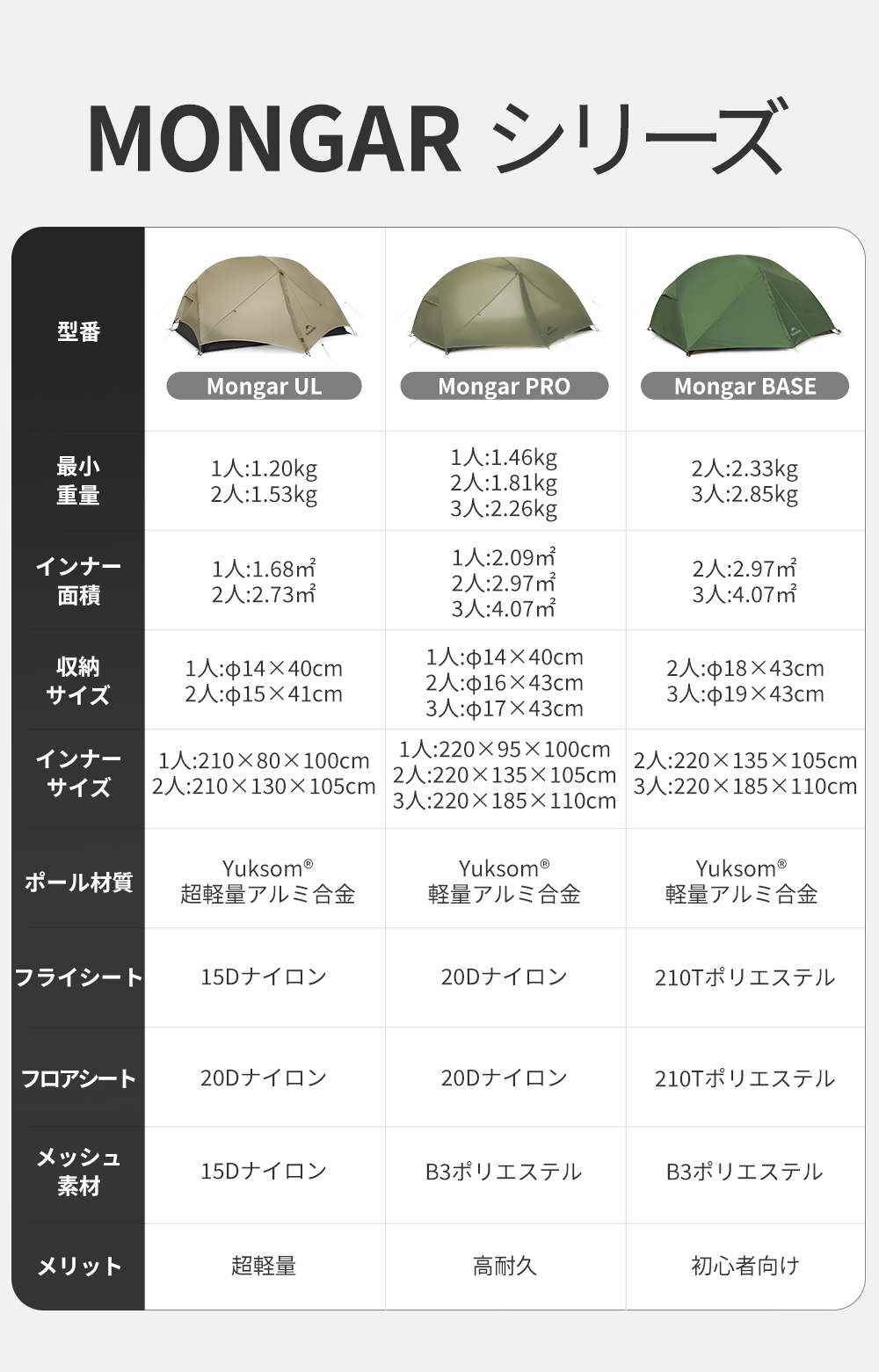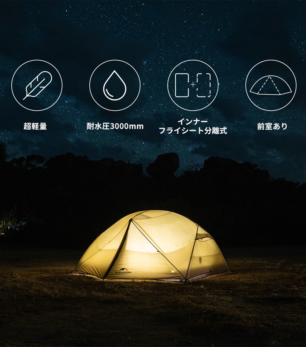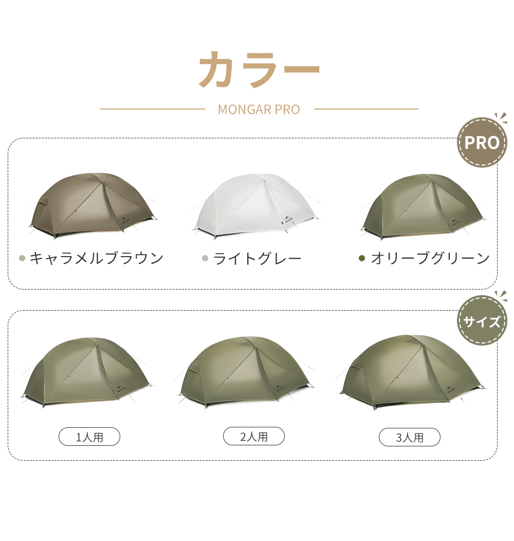 新作予約販売 Naturehike Mongar Base&Pro テント 1/2/3人用 軽量 アウトドア 二重層 専用グランドシート付 耐水圧3000+mm ドームテント