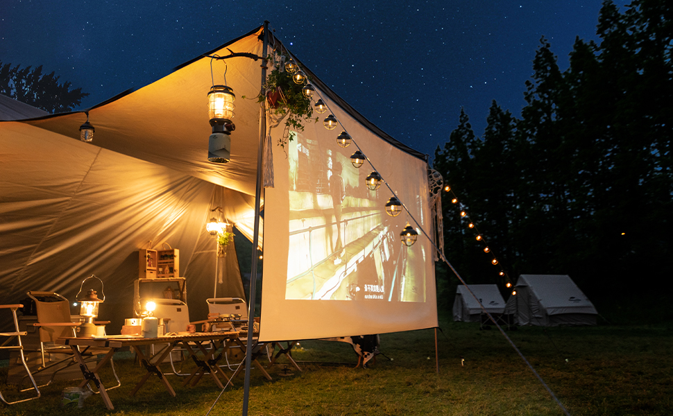 キャンプで映画鑑賞を楽しもう-プロジェクタースクリーン付き