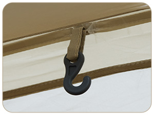 ランタンフックテントに照明を吊るすのが簡単。 |