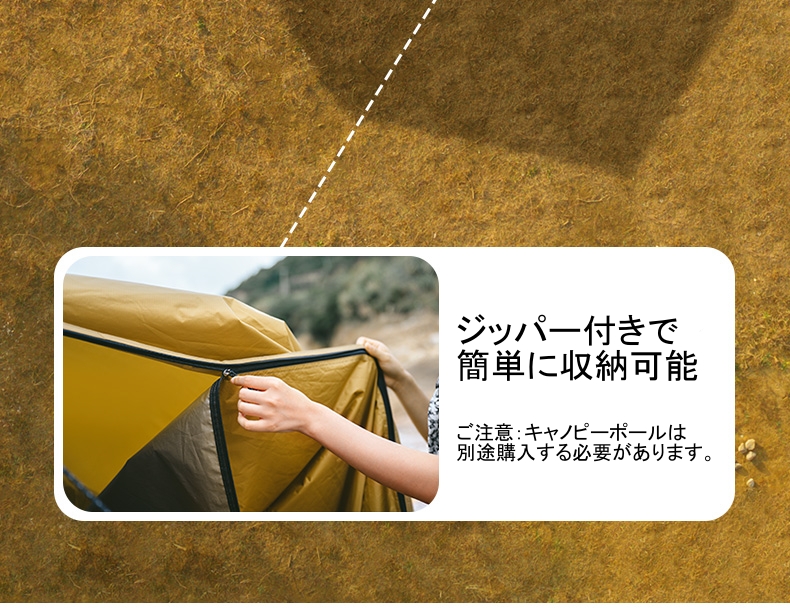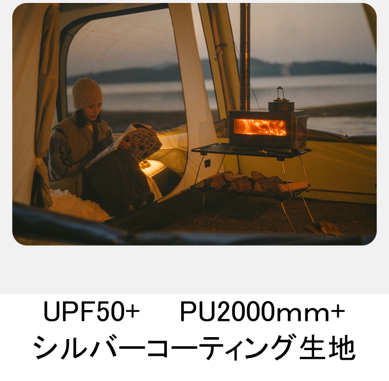 4、【オールシーズン対応】煙突とスカート付きなので薪ストーブと併用すれば冬は暖かく過ごせます。拡張キャノピーデザインは最大 4 人まで使用可能。(注意:本製品にキャノピーポールは含まれません。)