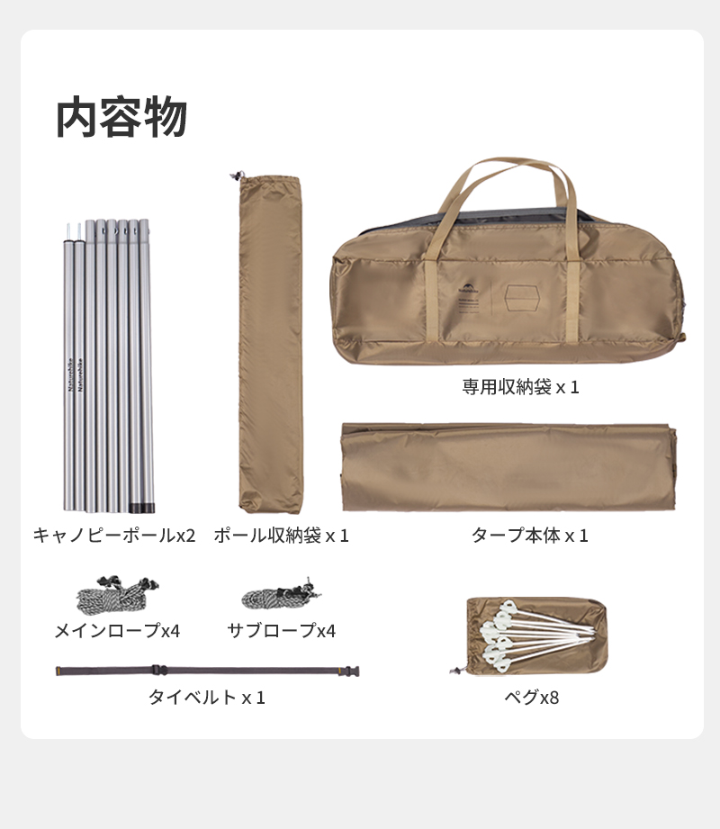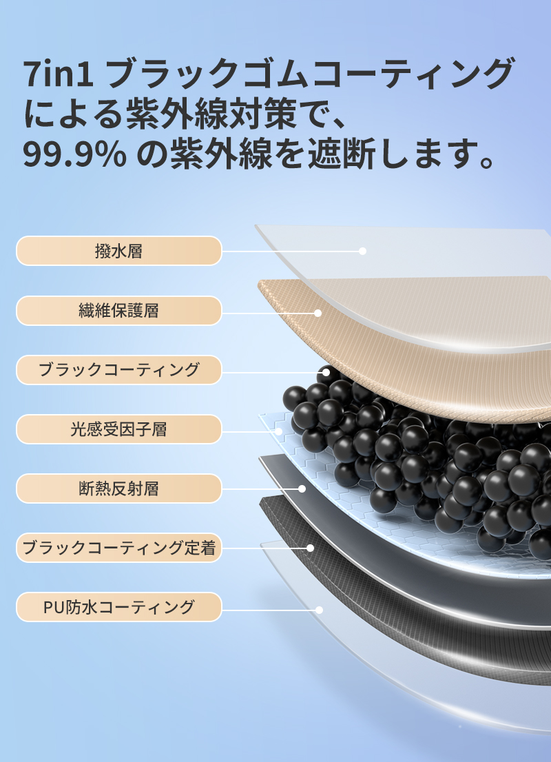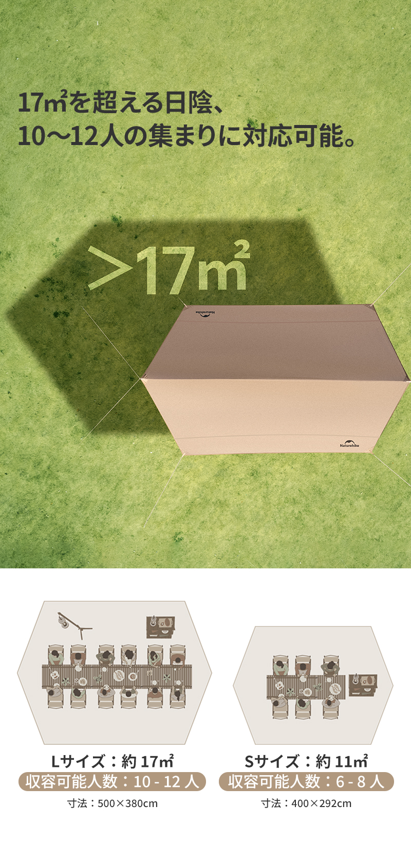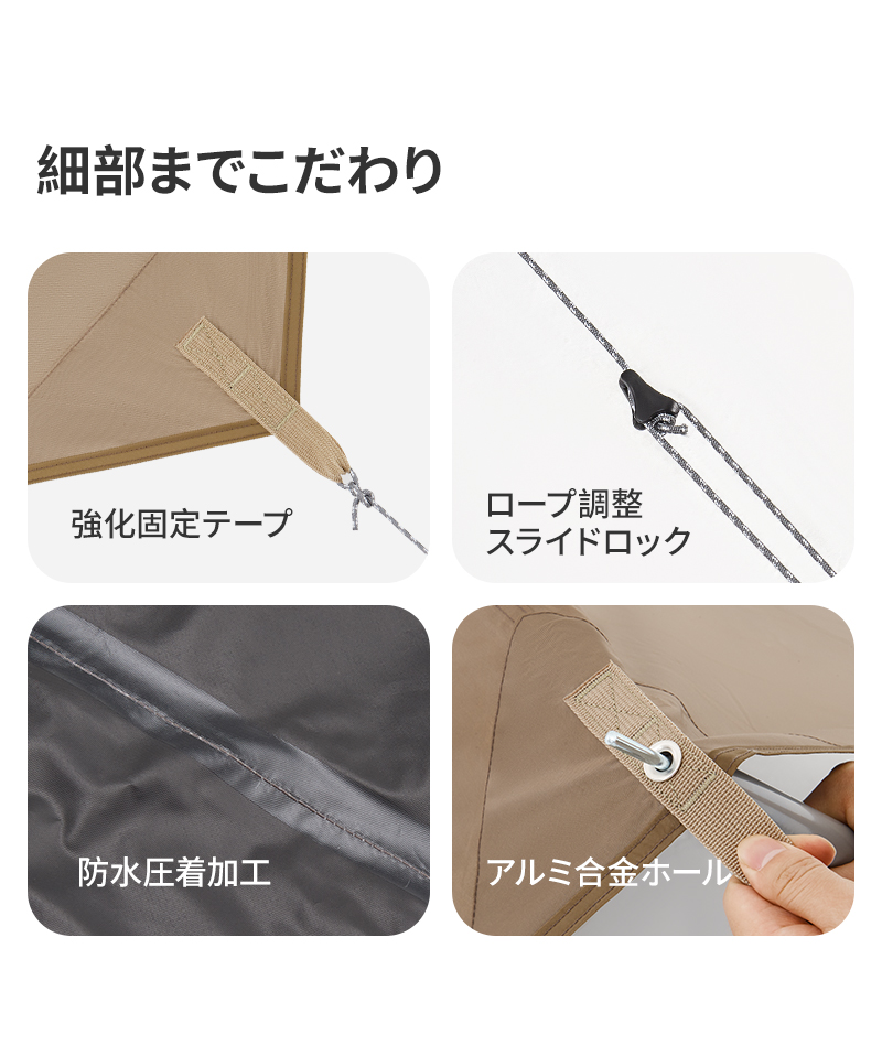 特徴1、Naturehikeのブラックガムタープは、7層の日焼け止めと防水設計を備えており、UPF2000+を達成できます。2、生地は模造蓮の葉の撥水処理とPU防水コーティングで処理されており、耐水圧PU18000mm+を実現することができます。3、ユニークなデザインのタープポールで、組み立てやすく、安定性に優れています。直径2.2cm、長さ220cmで出入り自由、開放感抜群でゆったりと美しい景色を楽しめります。