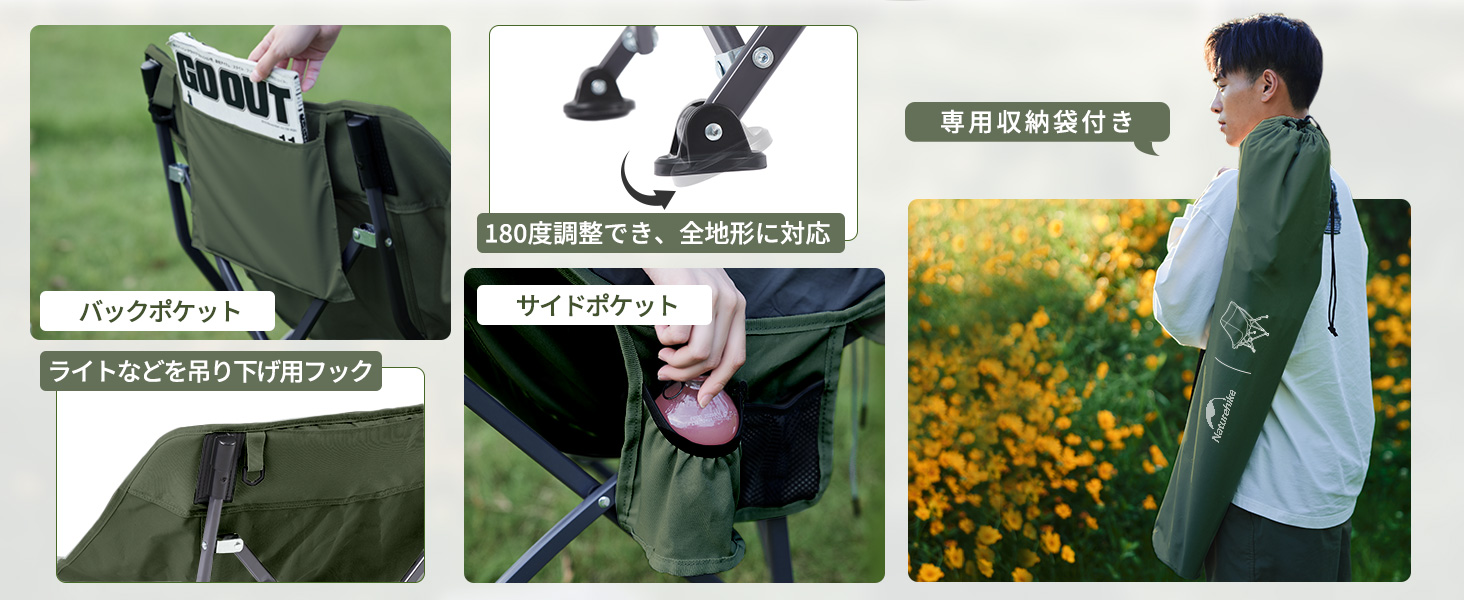Naturehike YL04 plus アウトドアチェア 折りたたみ 二色 耐荷重140kg 収束式 1秒開閉 組み立て不要 軽量 ワイド 広い座面