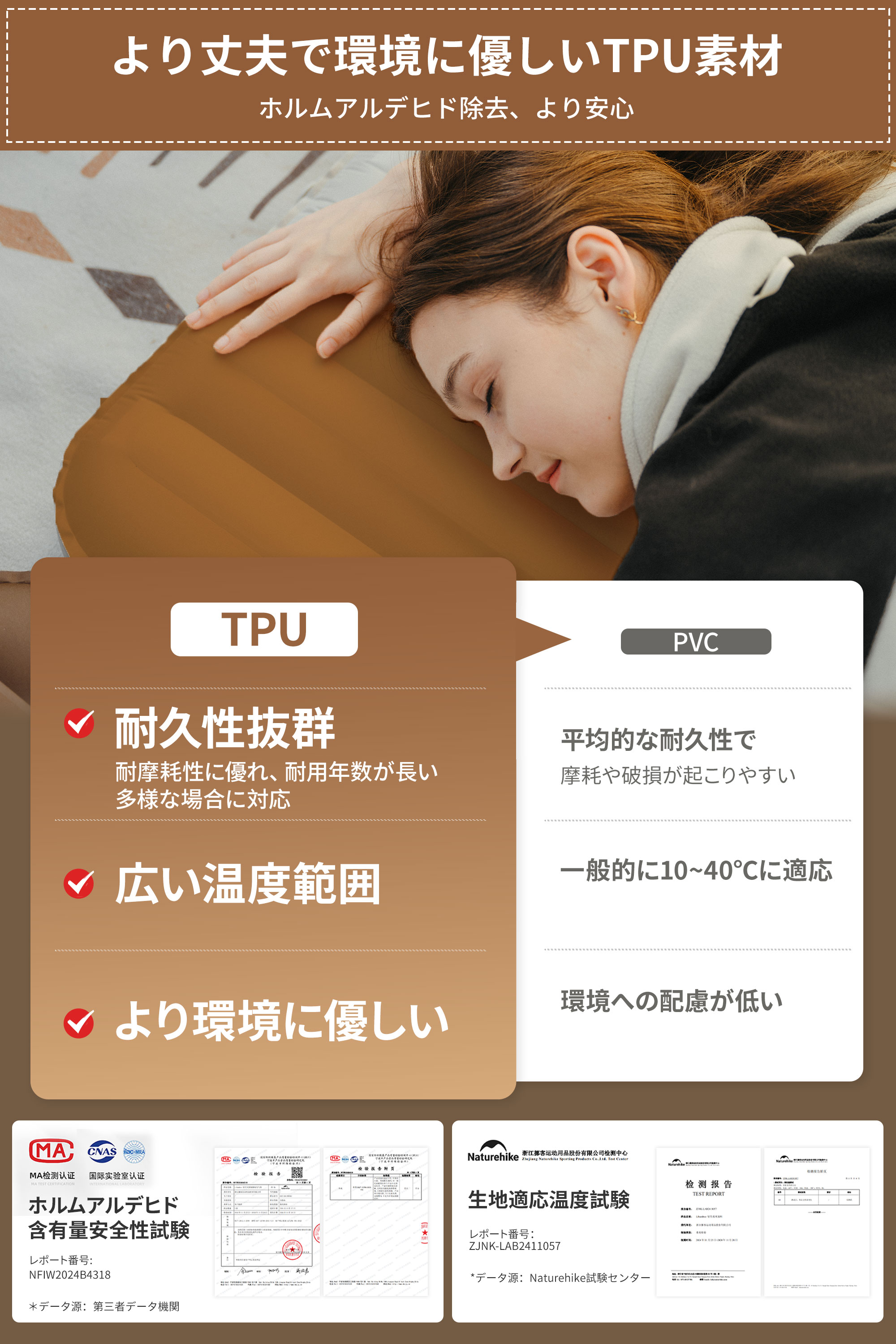 【抜群な寝心地】チューブ式サポート構造で、発泡材を使用せずが、より良いサポートを提供できます。高品質なTPU生地を使用し、柔らかな肌触りで、通気性・防水性・保温性もよく、静電気防止で、静かに眠るのが実現できます。耐久性があるエアーベッドは長年間使用できます。