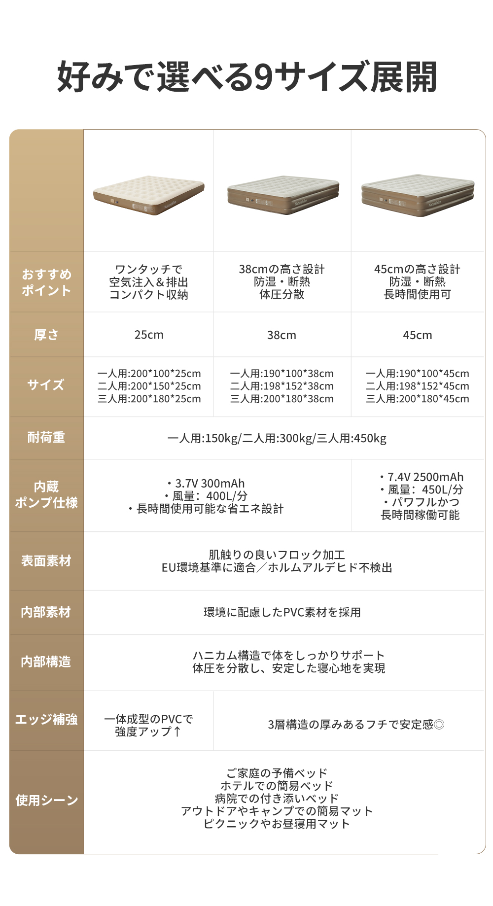 【新作】Naturehike Chenjing エアーベッド 内蔵電動ポンプ 25cm/38cm/45cm エアーマット 1/2/3 人用