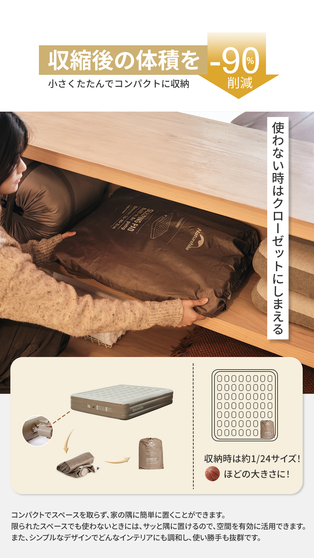 快適睡眠 簡易操作 Type-C 充電 コンパクト 収納袋付き お昼寝 防災 寝具 スピード膨張