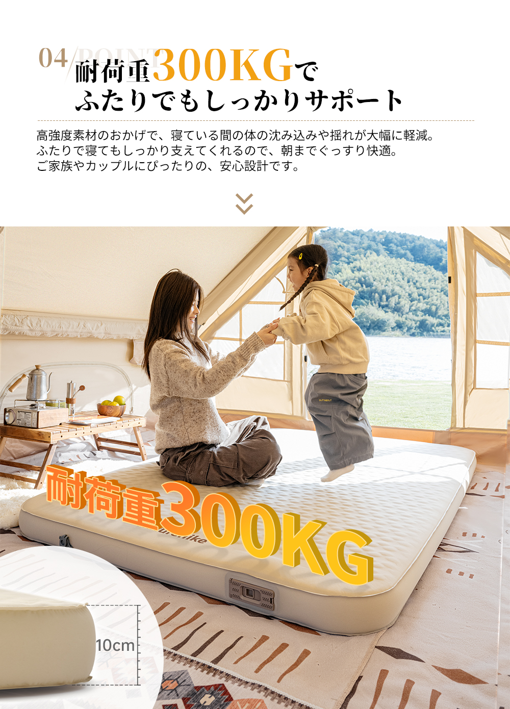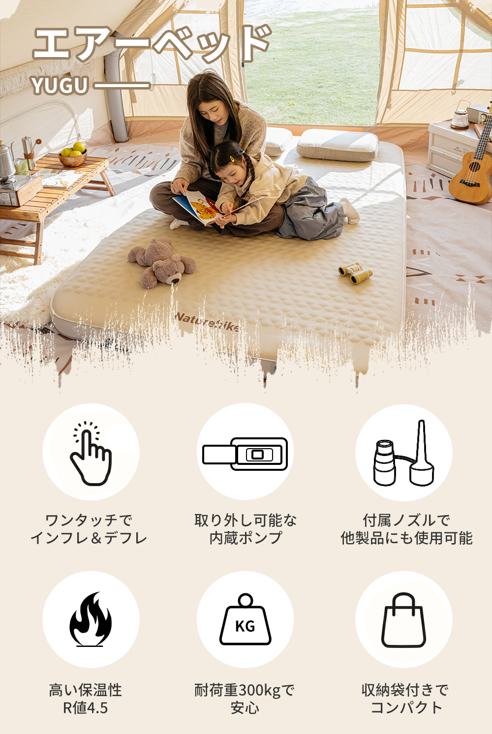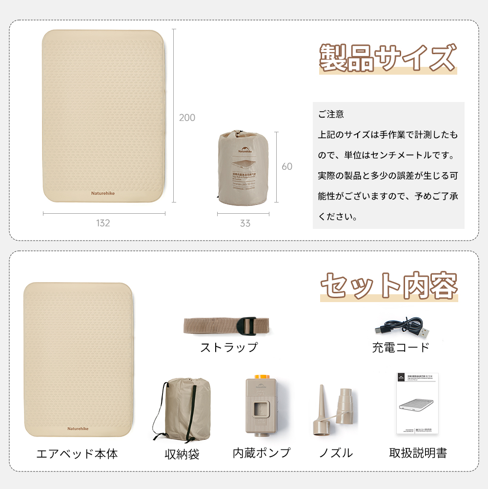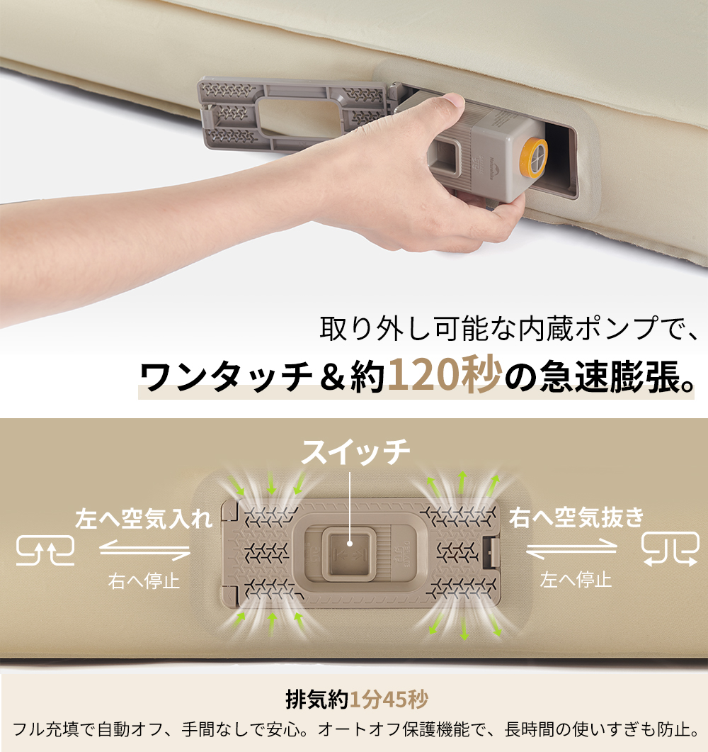 Naturehike Yugu C10 インフレーターマット 電動ポンプ内蔵 4.5R値 極厚10cm 静か エアーマット キャンプ 電動ベッド