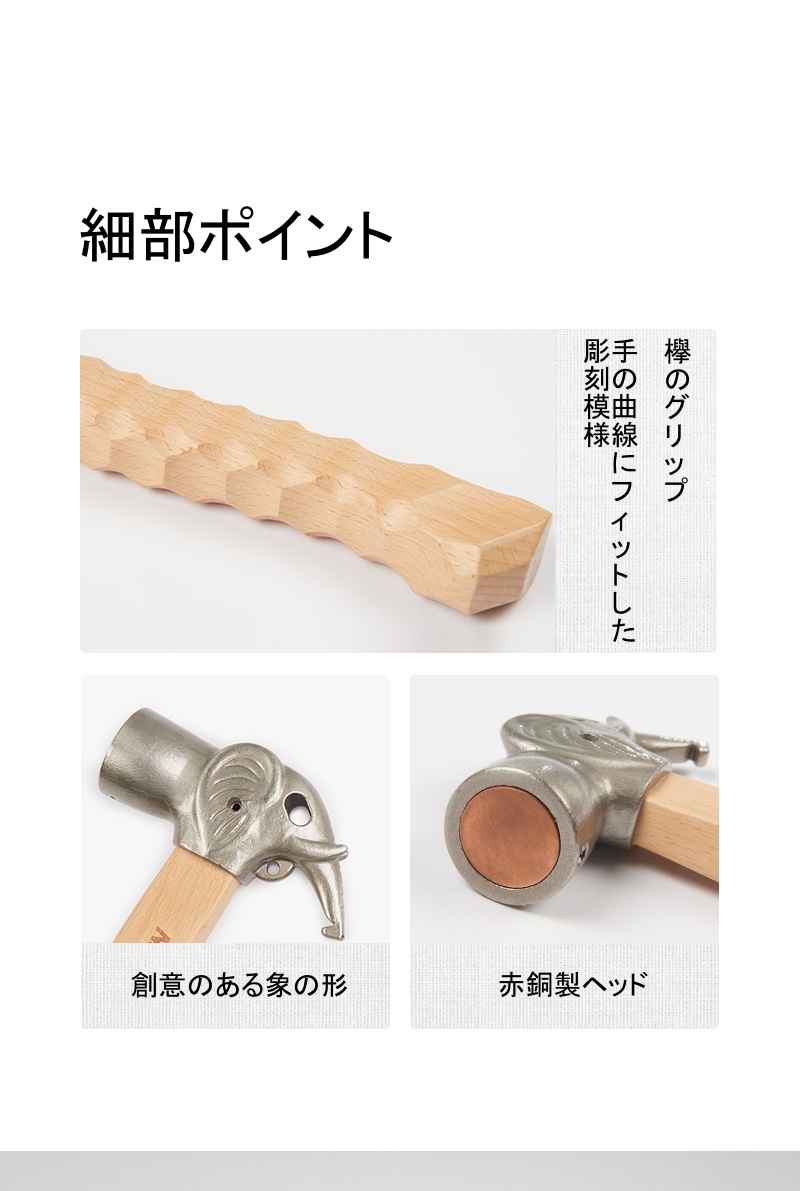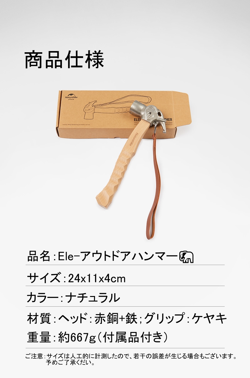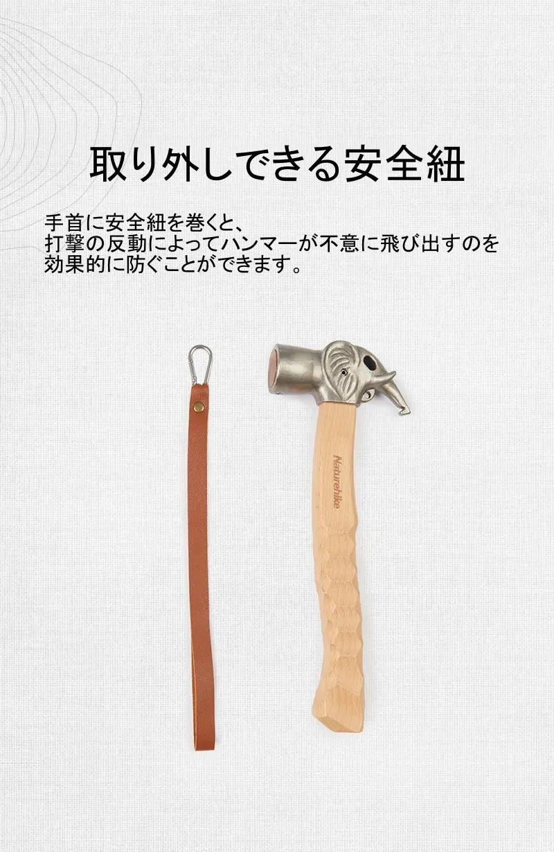 Naturehike Ele-アウトドアハンマー ペグハンマー 象の形 ペグ打ち ペグ抜き付き 天然木製 コンパクト 軽量
