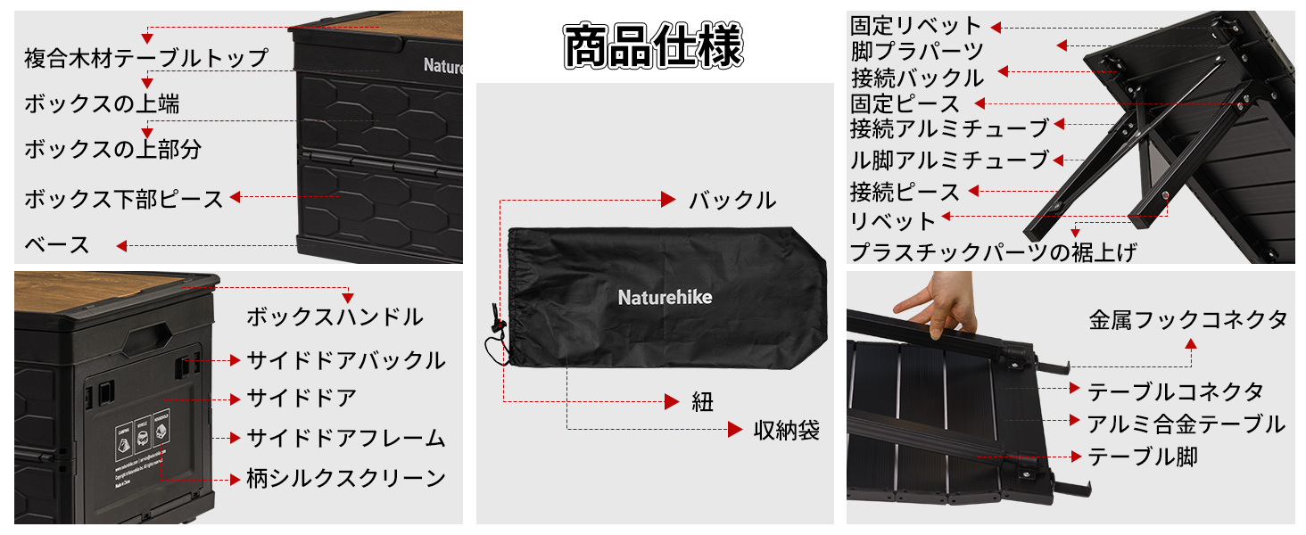 Naturehike Lispace アウトドアテーブル 収納ボックス 重量約4.1kg ハンドル付き