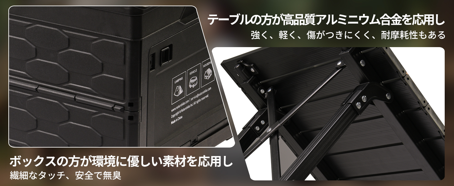 - 【素材展示】ボックスの方が環境に優しい素材を応用し、繊細なタッチ、安全で無臭。テーブルの方が高品質アルミニウム合金を応用し、強く、軽く、傷がつきにくく、耐摩耗性もある。