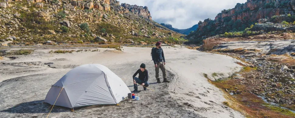 耐久性高い、軽量テント、自立式で簡単に設営できる