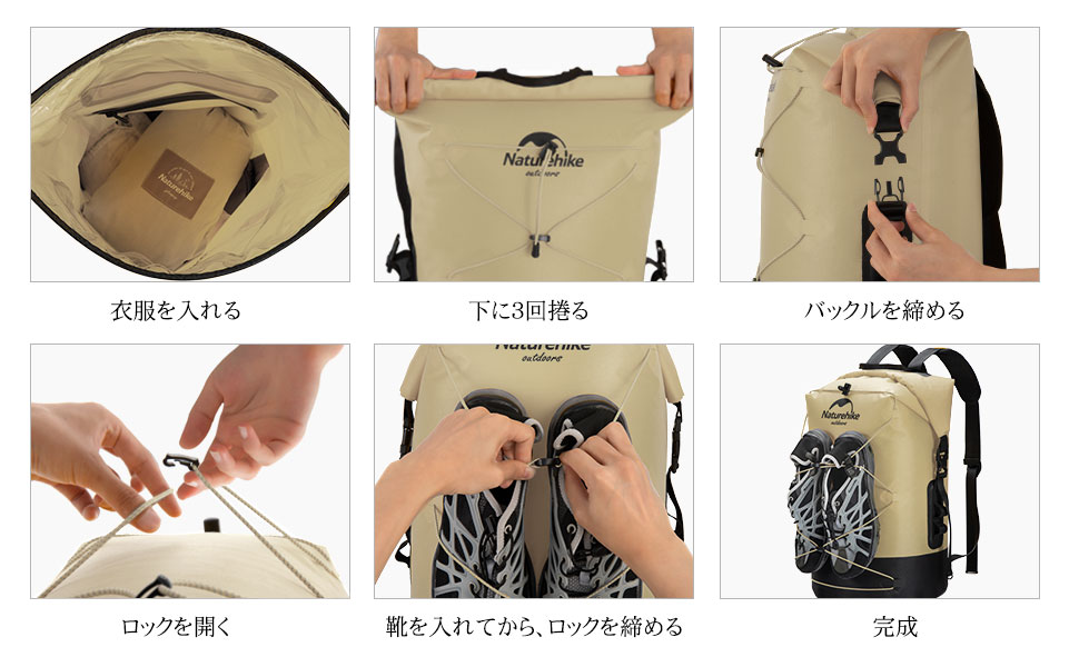 生地が厚くて丈夫、濡れた水着やサンダルを入れて、他の旅行バックに押し込んでも全然大丈夫、災害時に役立つさまざまな機能を装備したドライバッグ。高い防水性、携帯性を備え、シンプルな作りで最大限の収納力を発揮。色は目立つ黄色とカーキ二つ選択可能。耐水性抜群、タオル、薄い上着、飲み物などオプショナルツアーなどには最適、素材はしっかりしていて、雑に扱っても破れる心配はない。