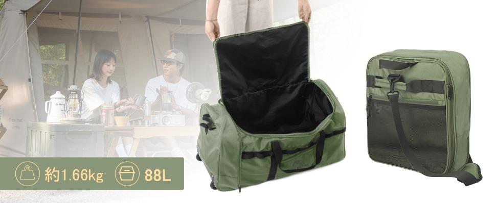 ●収納力抜群:収納バッグの容量は88Lで、フロントとサイドにポケットがあり、小物を掛けられるカラビナループもあり、5〜6日間の宿泊に対応しています!